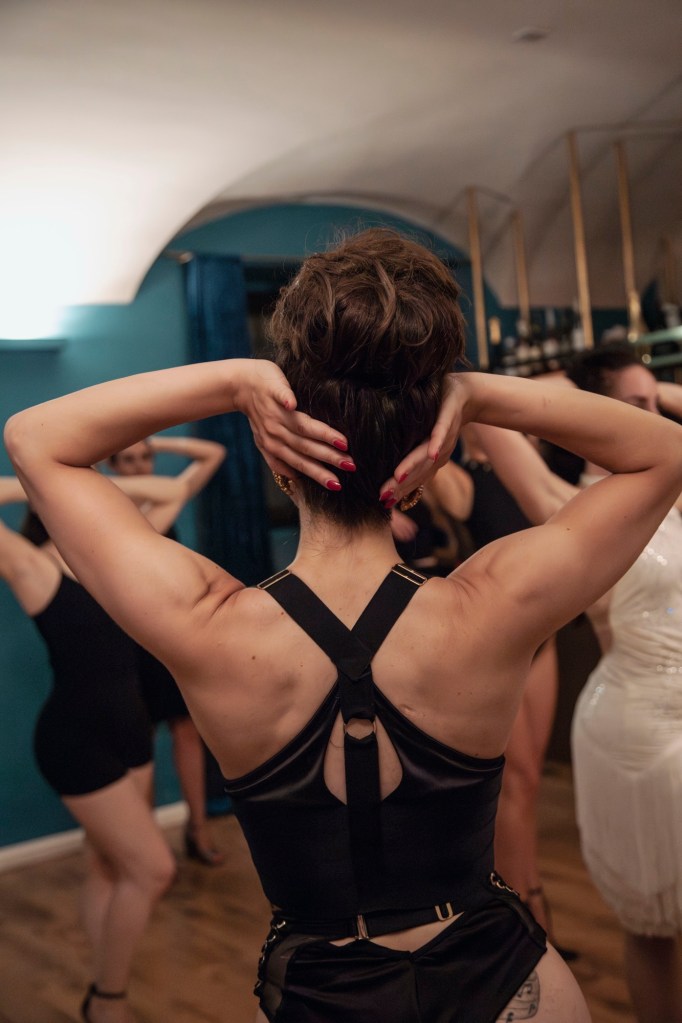 Guidate da performer professioniste, la sposa e le sue amiche attraversano un percorso leggero ma curato, fatto di tecnica, portamento e gioco scenico: ogni gesto trova il proprio ritmo, ogni presenza il proprio spazio.
