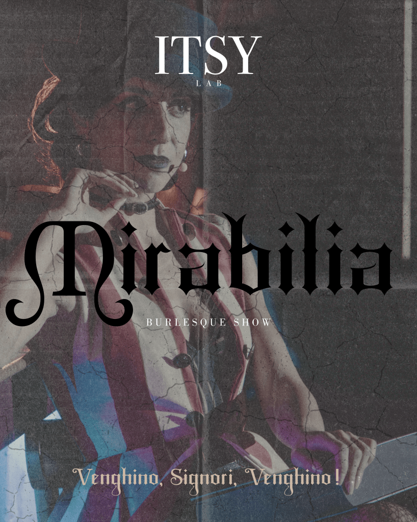 Mirabilia è il nostro circo di burlesque e stupore: piume ribelli, glitter indisciplinato e magia che prende il palco per mano.